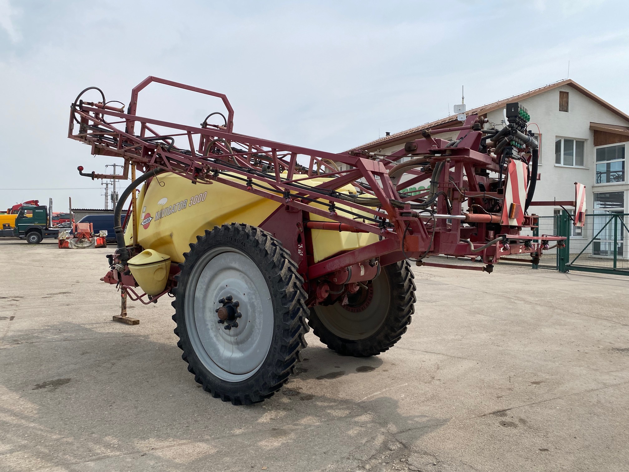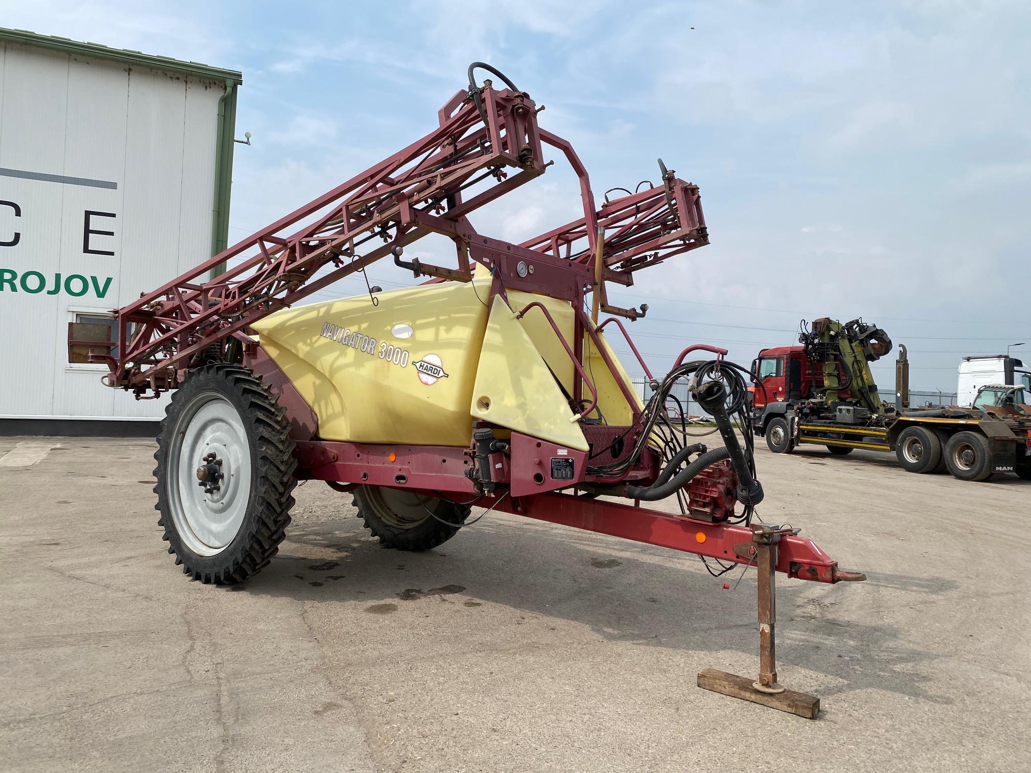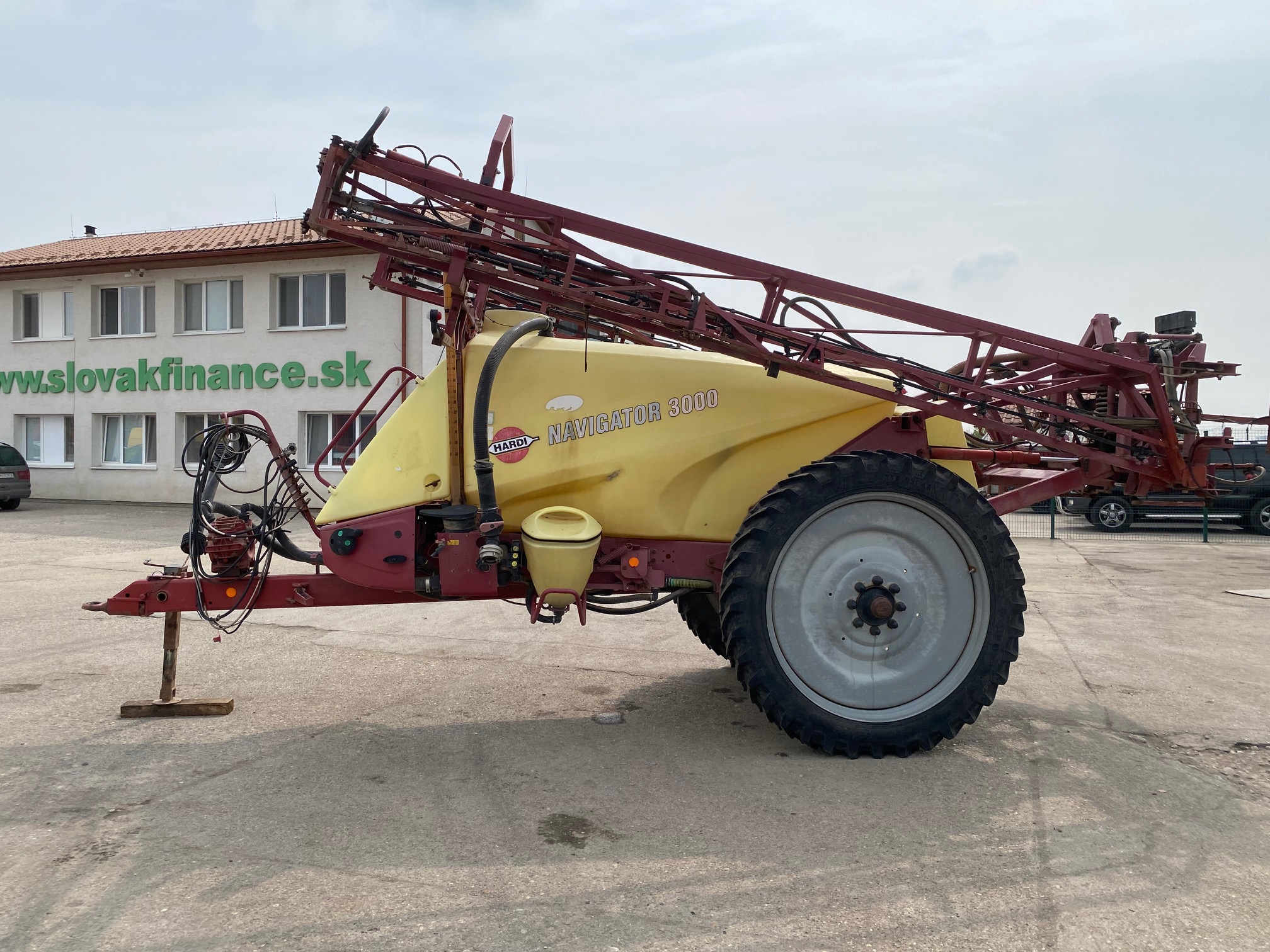Ťahaný postrekovač na traktor HARDI NAVIGATOR 3000, r.v. 2008, objem 3000 l, hydraulicky sklopné ramená, k dispozícií ovládač do kabíny traktora, pracovný záber cca. 20 m stav pneu. 40-50%,Súčasťou ovládač do traktora,  CENA=8.900 EUR+DPH
