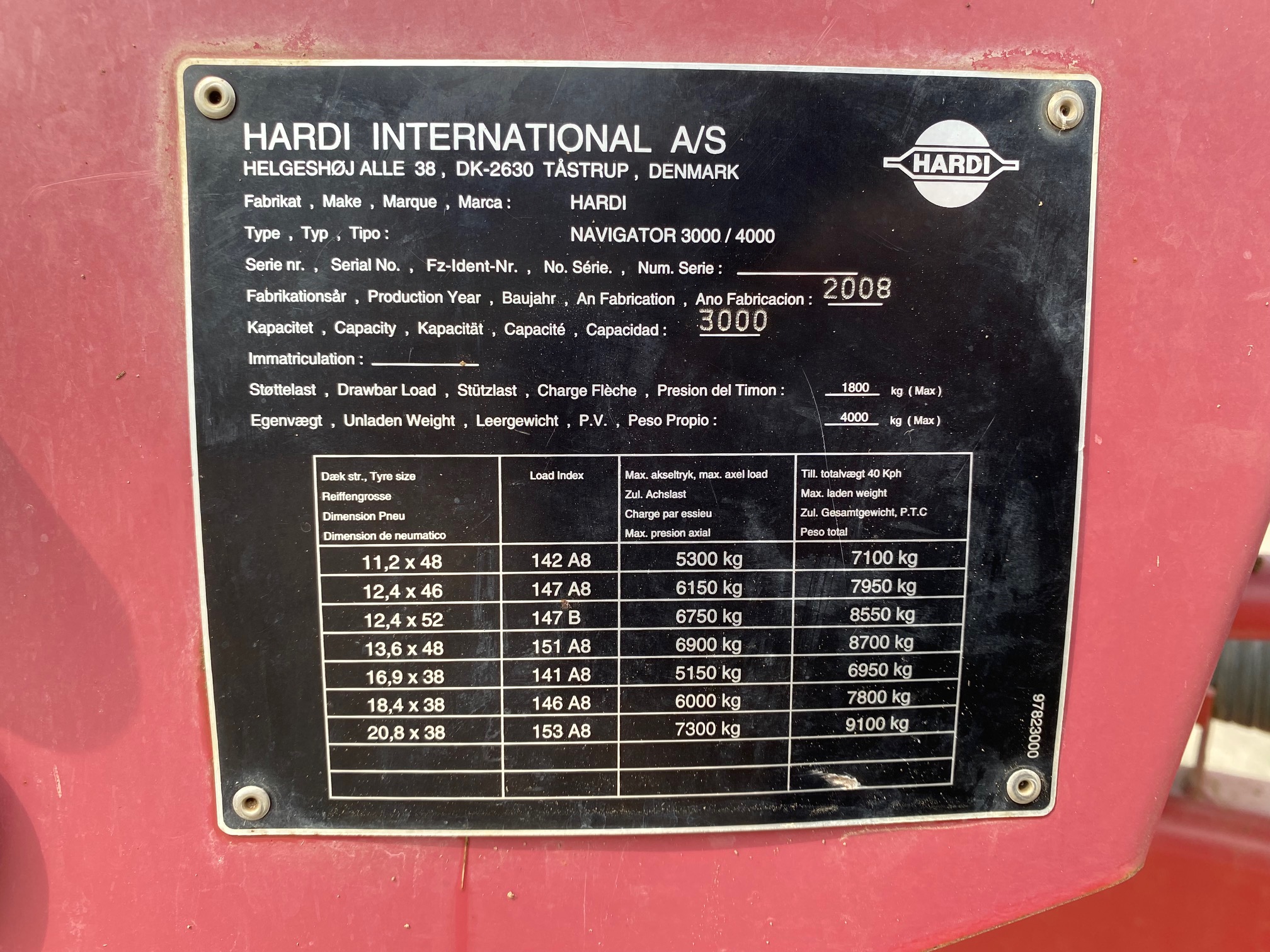 HARDI NAVIGATOR 3000 Ťahaný postrekovač VIN 248