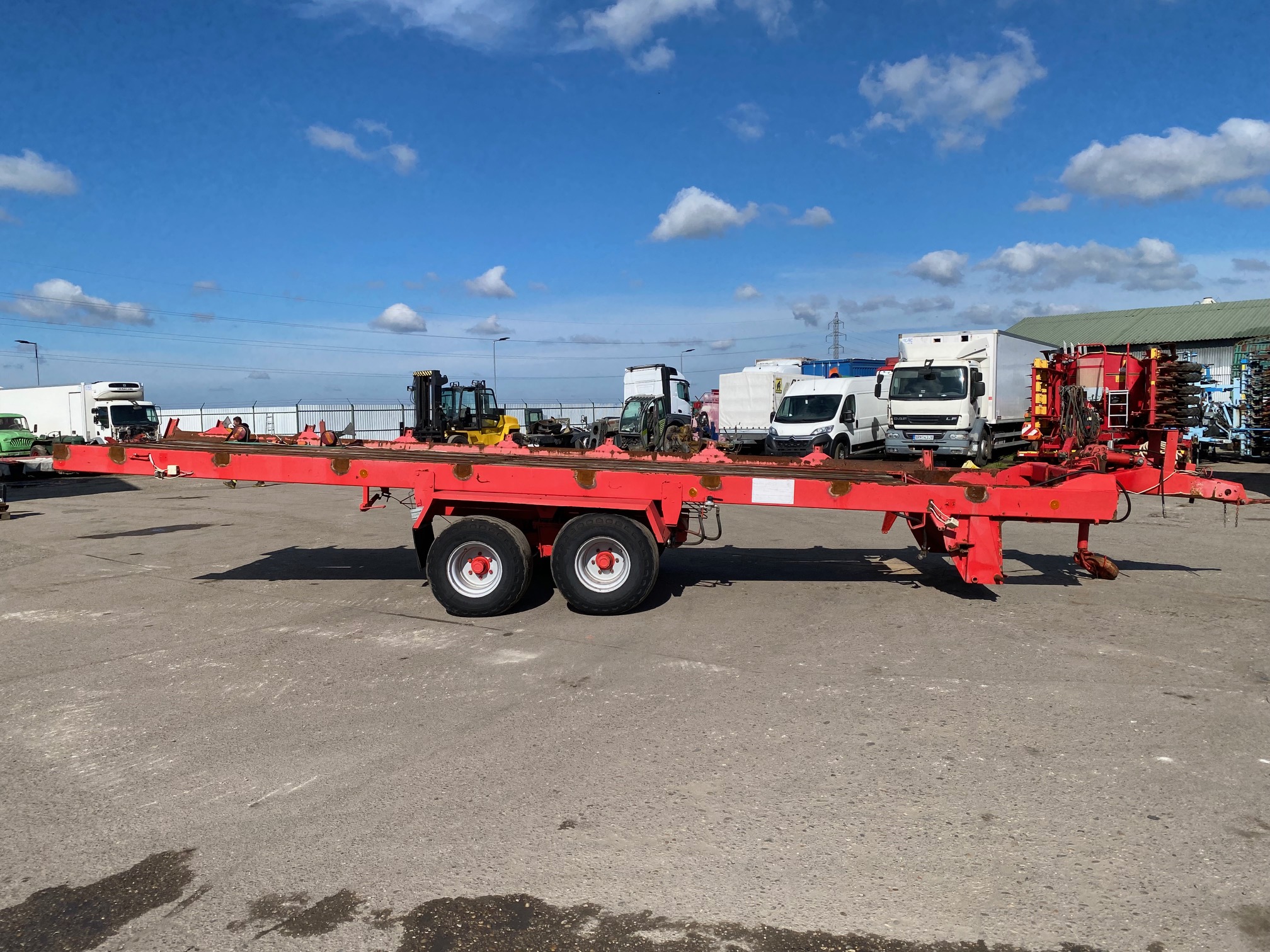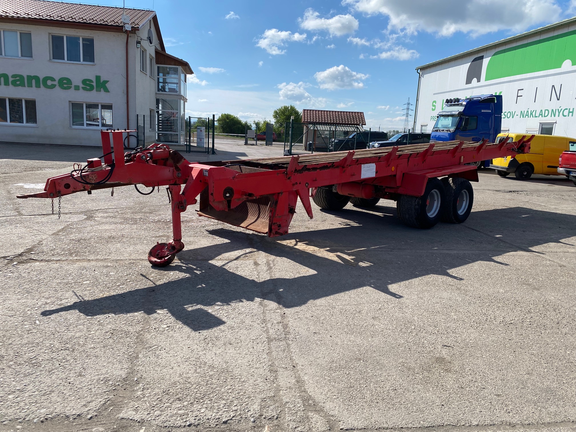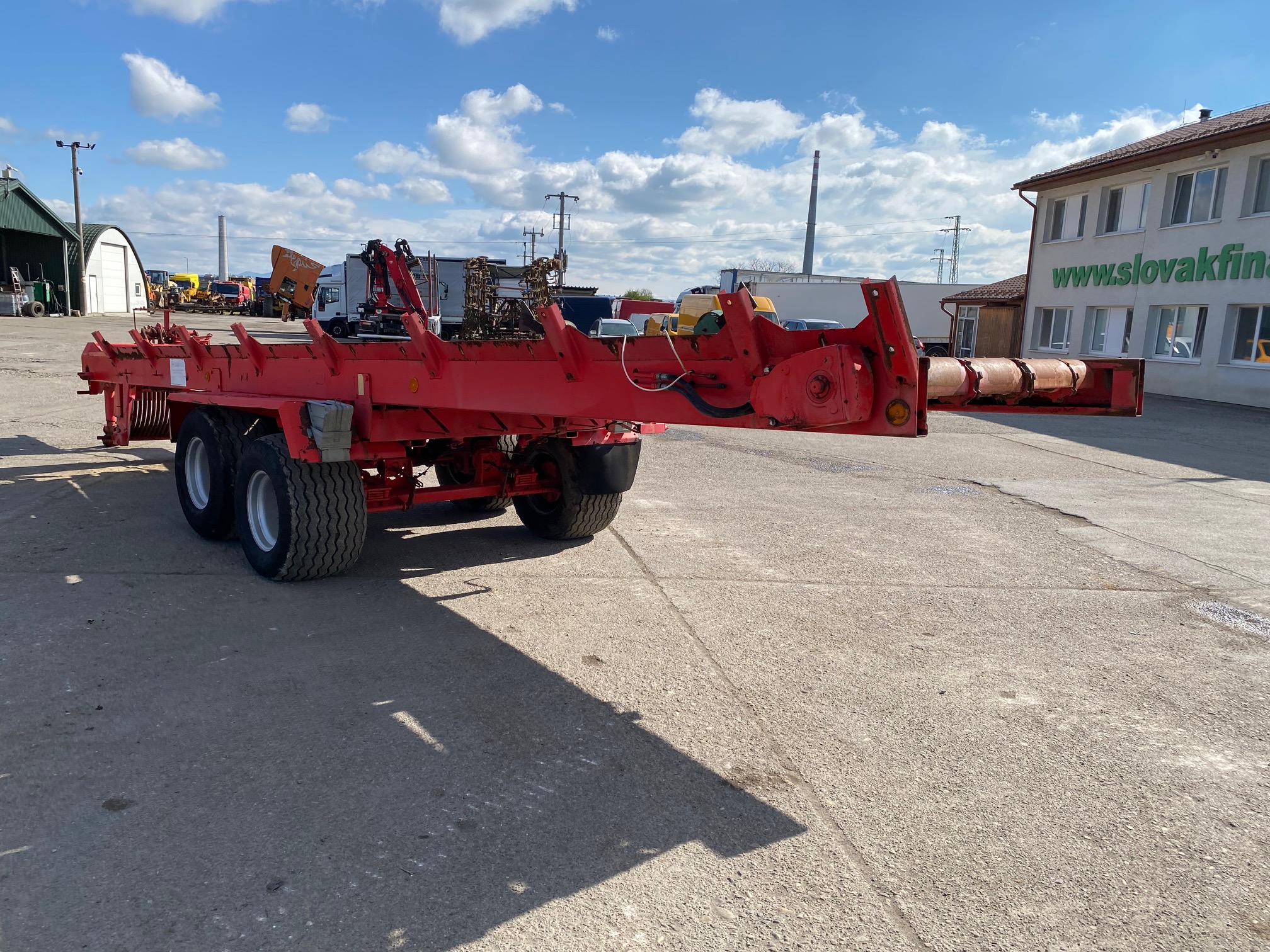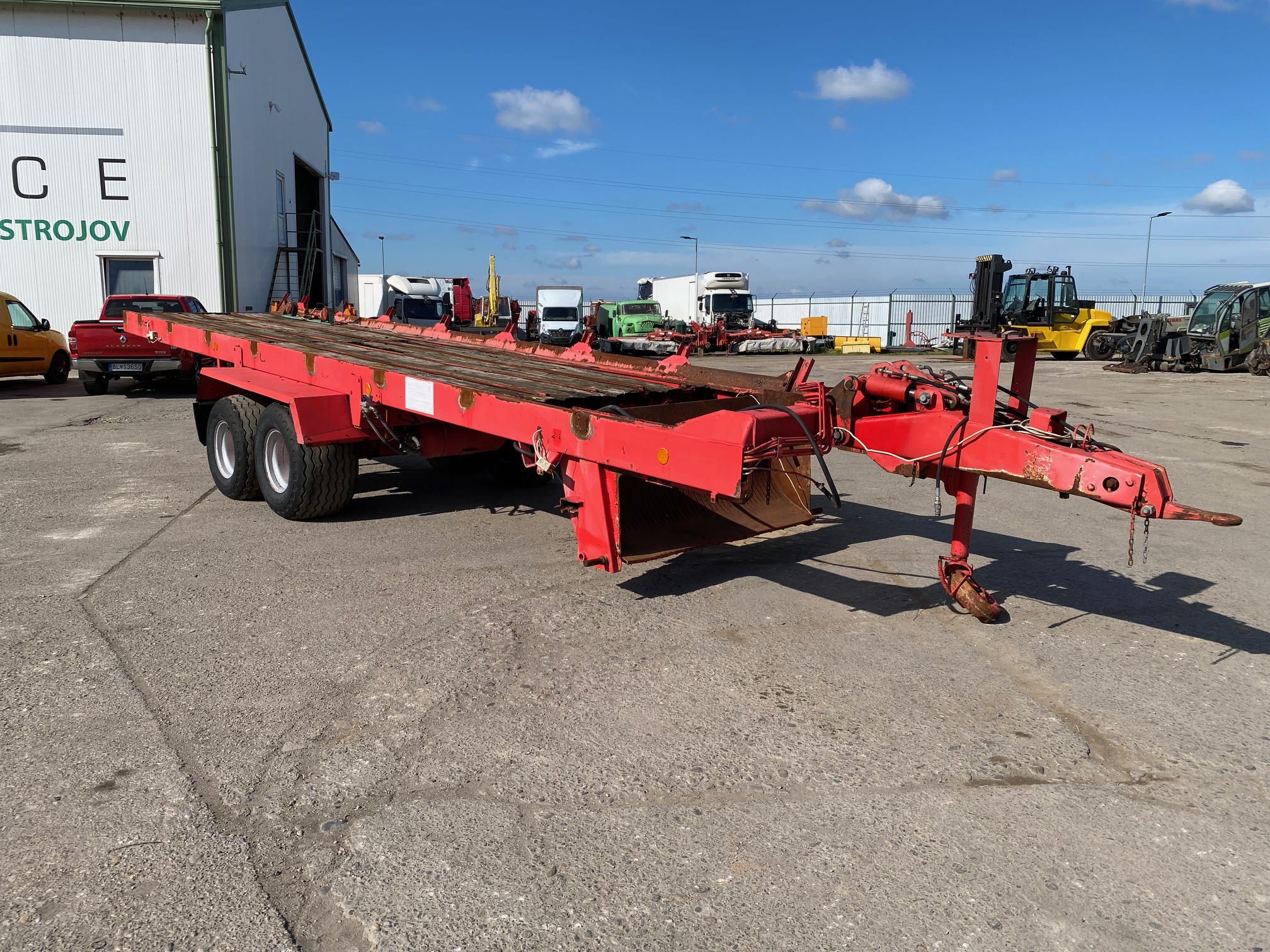 Podvozok zo zberacieho voza - typ SP3, r.v. 2005, bubnové brzdy, oko 40, stav pneu: 50%, celková dĺžka: 10,8m, dĺžka ložnej plochy: 7,4m, šírka: 1,7m, podvozok vhodný na prestavbu na vlečku za traktor sklápač, dobytčák, rozmetadlo hnoja atď, CENA=1.900 EUR+DPH