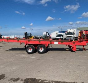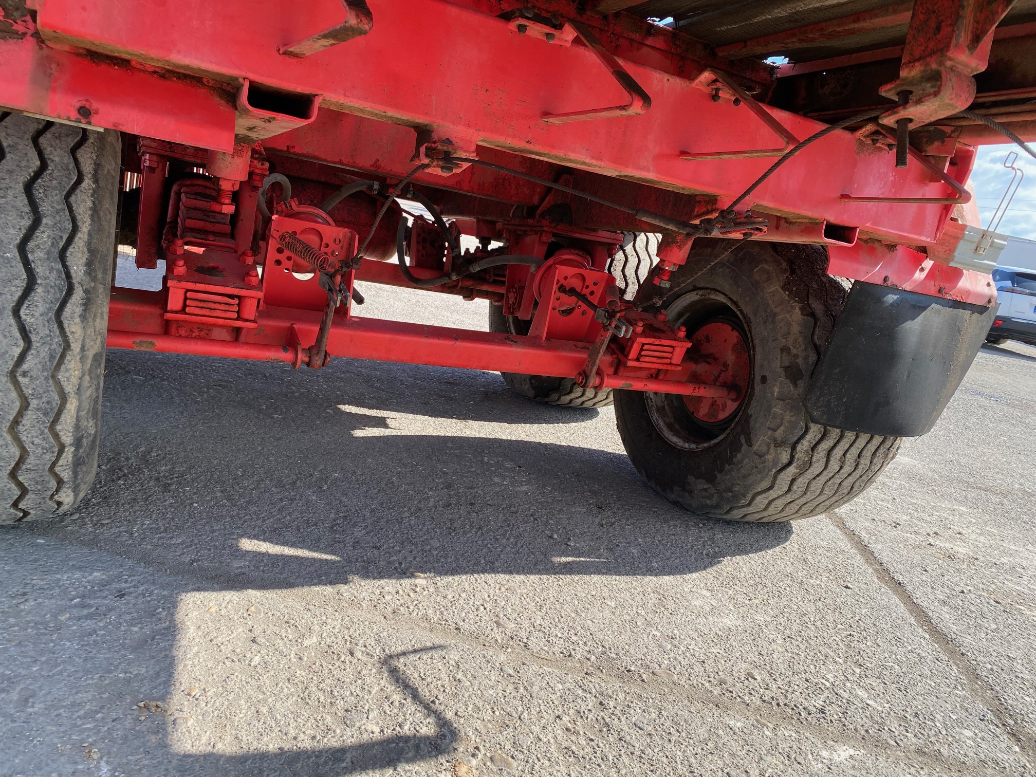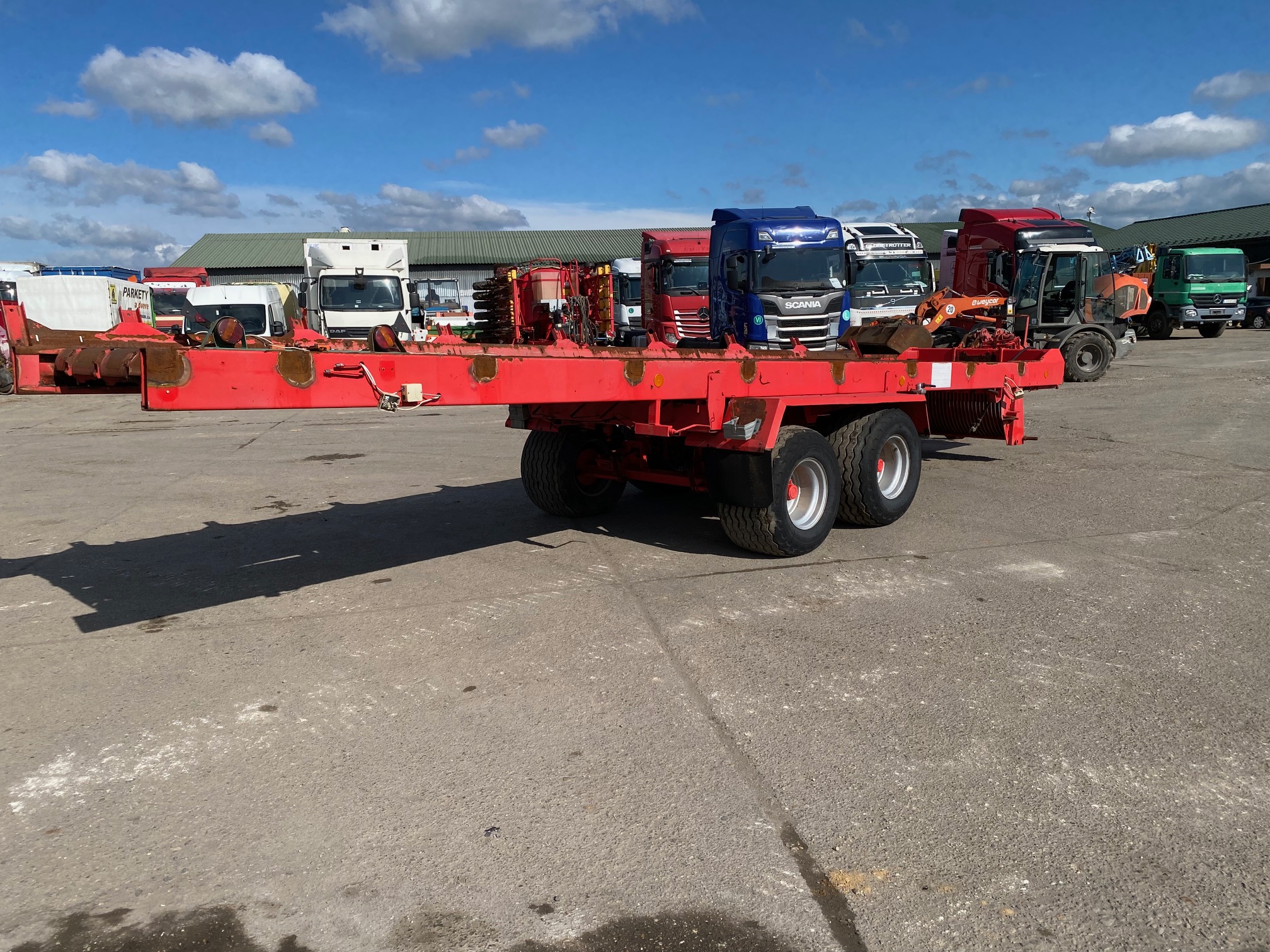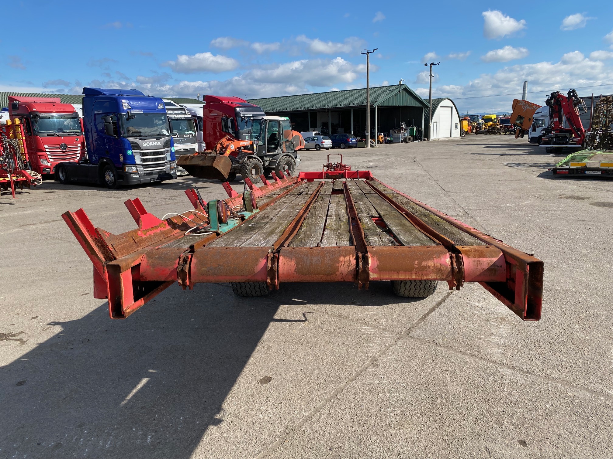 Podvozok zo zberacieho voza - typ SP3, r.v. 2005, bubnové brzdy, oko 40, stav pneu: 50%, celková dĺžka: 10,8m, dĺžka ložnej plochy: 7,4m, šírka: 1,7m, podvozok vhodný na prestavbu na vlečku za traktor sklápač, dobytčák, rozmetadlo hnoja atď, CENA=1.900 EUR+DPH