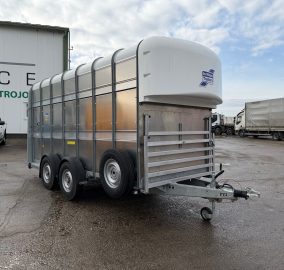IFOR WILLIAMS TA35 dvojpodlažný samobrzdený vozík na prepravu oviec, kôz a dobytka, nový neregistrovaný, bubnové brzdy, vnútorná D: 5,82 m, Š: 2,28 m, V: 2,68 m, deflektor, možnosť oddelenia strednou deliacou prepážkou, možnosť dokúpiť konskú deliacu prepážku za 750,- EUR