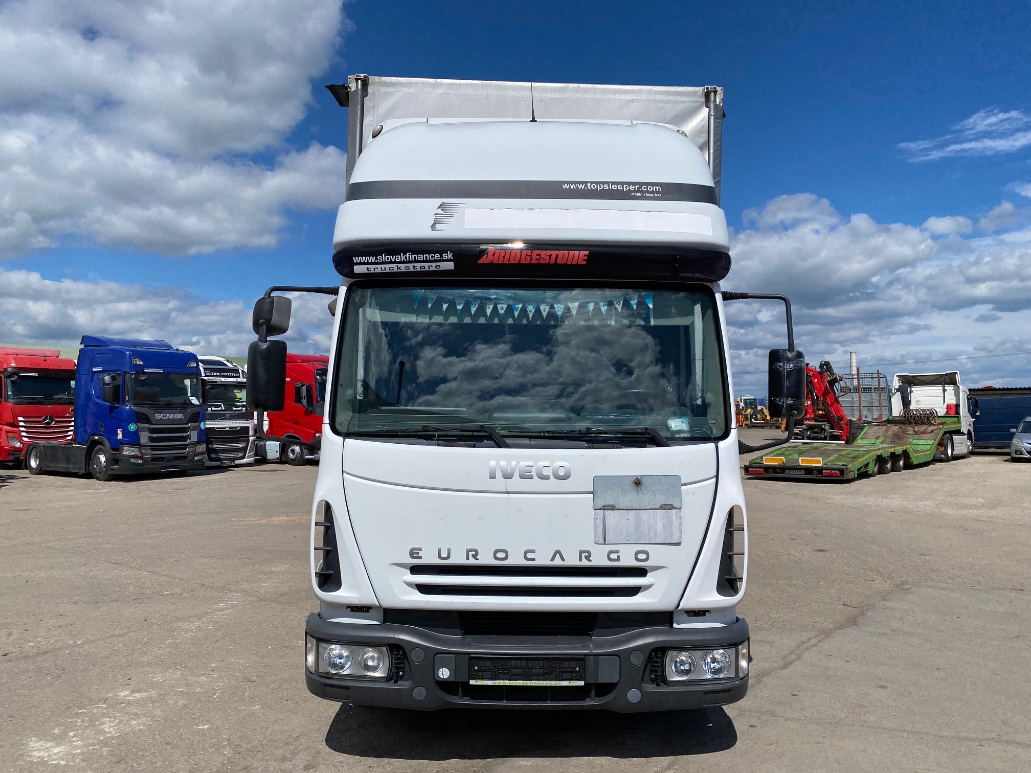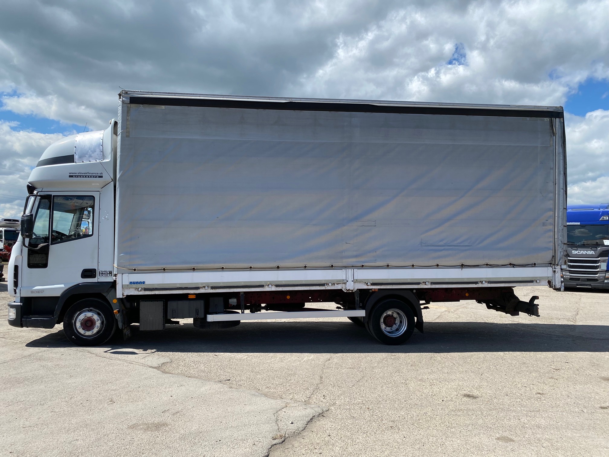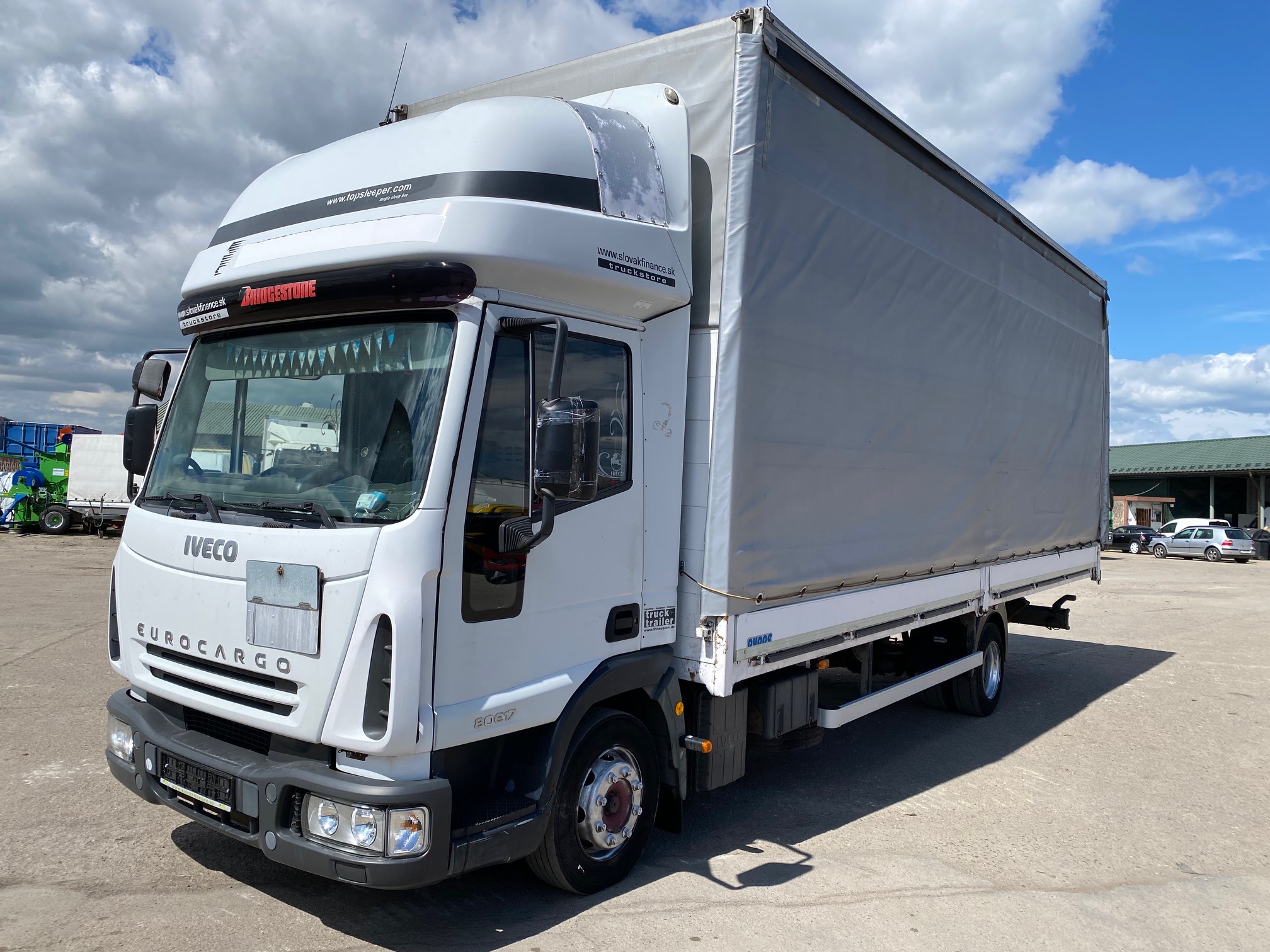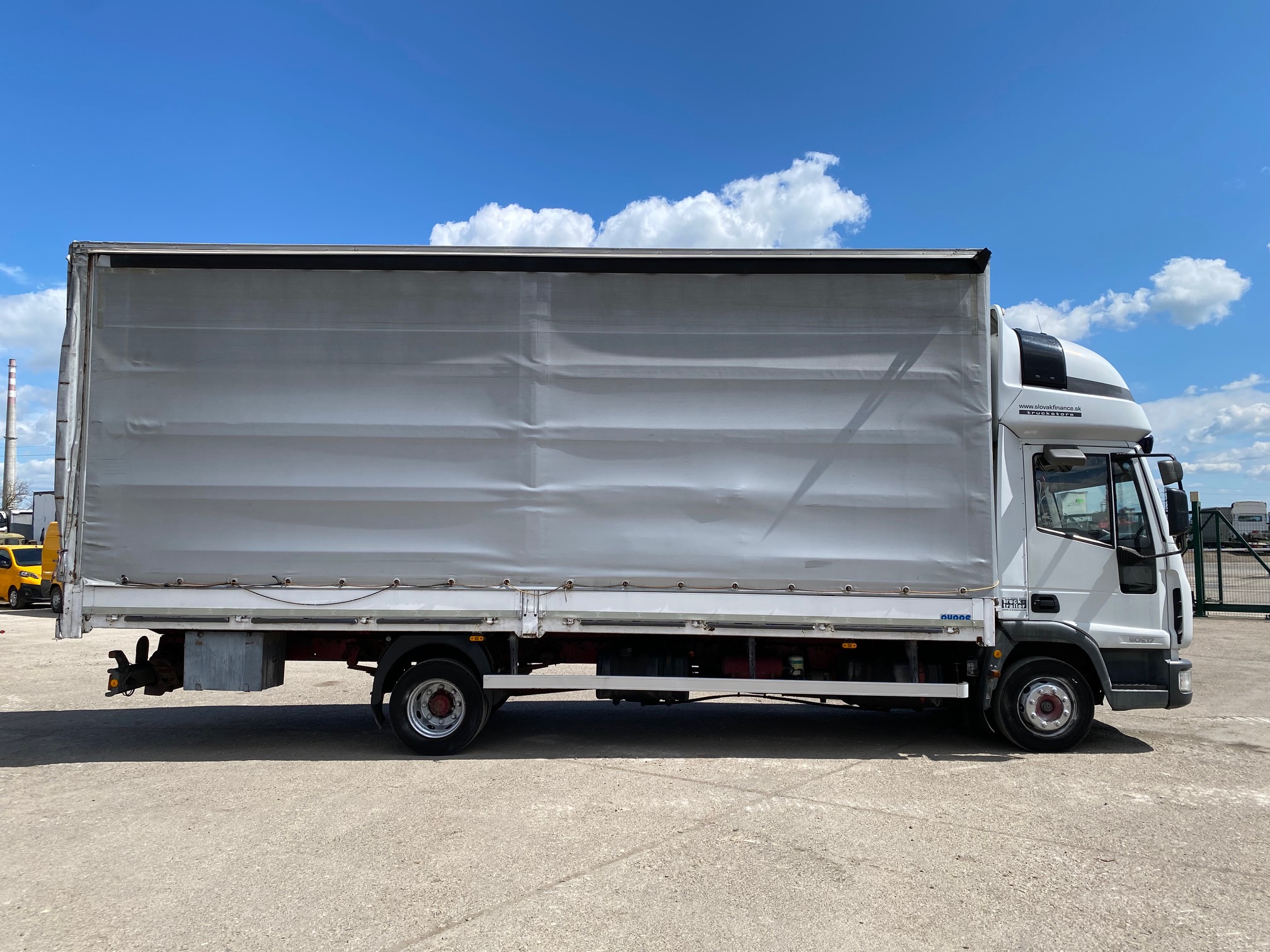 IVECO EUROCARGO ML80E17 valník s plachtou a bočnicami r.v. 11/2003, 361 834 km, EURO 3, 125 kW, 3920 cm3, manuál 6st, motorová brzda, nezávislé kúrenie, 3 miesta na sedenie, spacia nadstavba, na perách, dvojstranná zhrňovacia plachta, rozmery: D- 7,15m, Š- 2,49m, V- 2,9m, výška bočnice 50 cm, váha: 5060kg, celková hmotnosť: 7490 kg, STK,EK 19/05/2026, CENA= 1.900 EUR+DPH