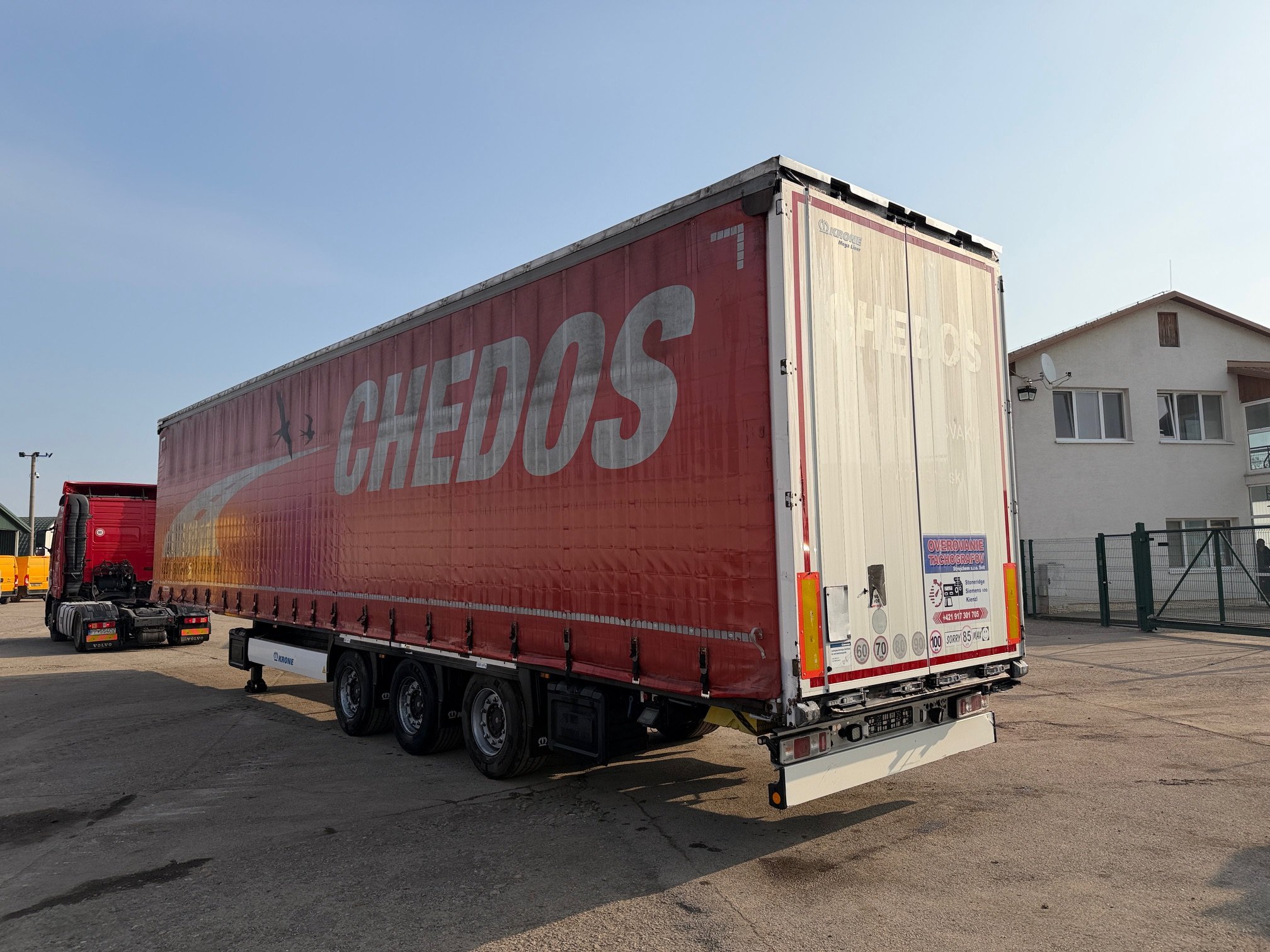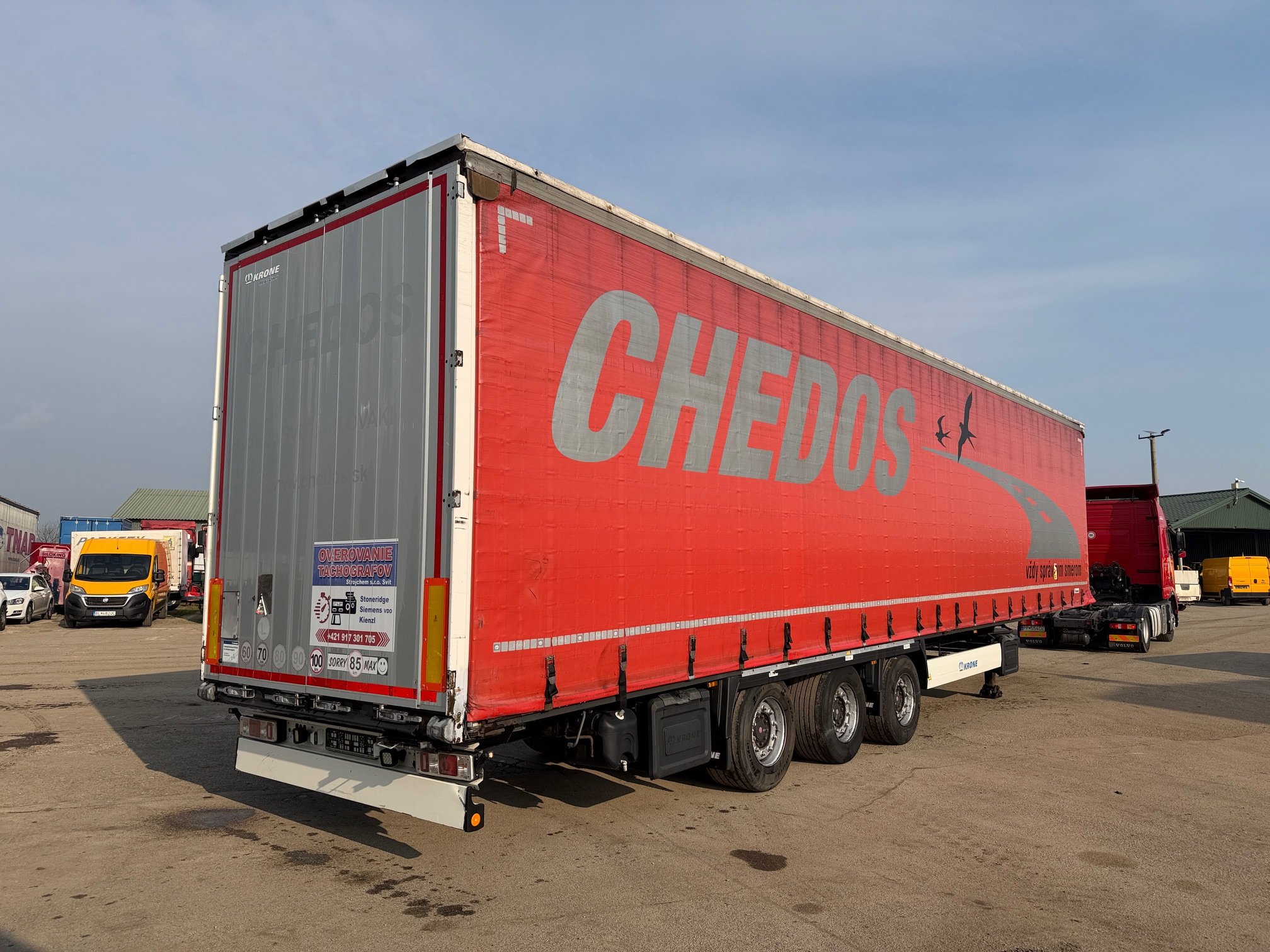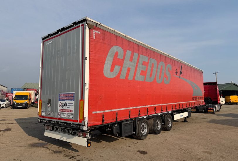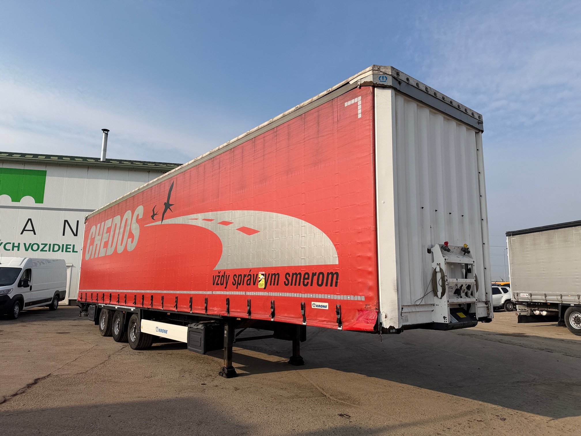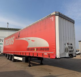 KRONE SD LOWDECK trojstrannka r.v. 01/2017, kotúčové brzdy, zdvíhacia náprava, vnútorná výška: 3m, mechanický prízdvih strechy: 3,3m, váha: 6659 kg, celková hmotnosť: 35000 kg, neprezerateľná plachta, stav pneu: 40%, nápravy SAF, STK 29/10/2026, CENA=4.900 EUR+DPH