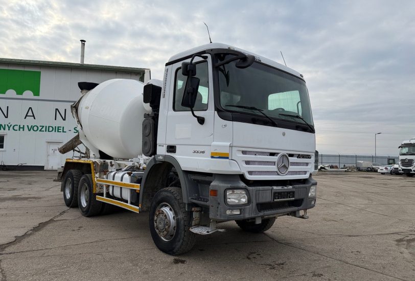 MERCEDES-BENZ actros 3336 6x6 domiešavač 7m3 r.v. 02/2008, 199 157 km, EURO 5, 265 kW, 11946 cm3, poloautomat, motorová brzda, klimatizácia, pohon bubna - hydromotor, komplet na perách, váha- 14.800 kg, celková hmotnosť- 33.000 kg, stav pneumatík 4x 50% 6x10%