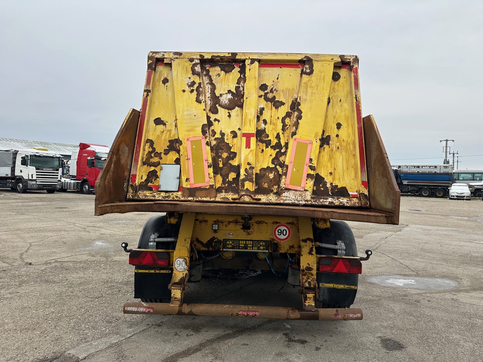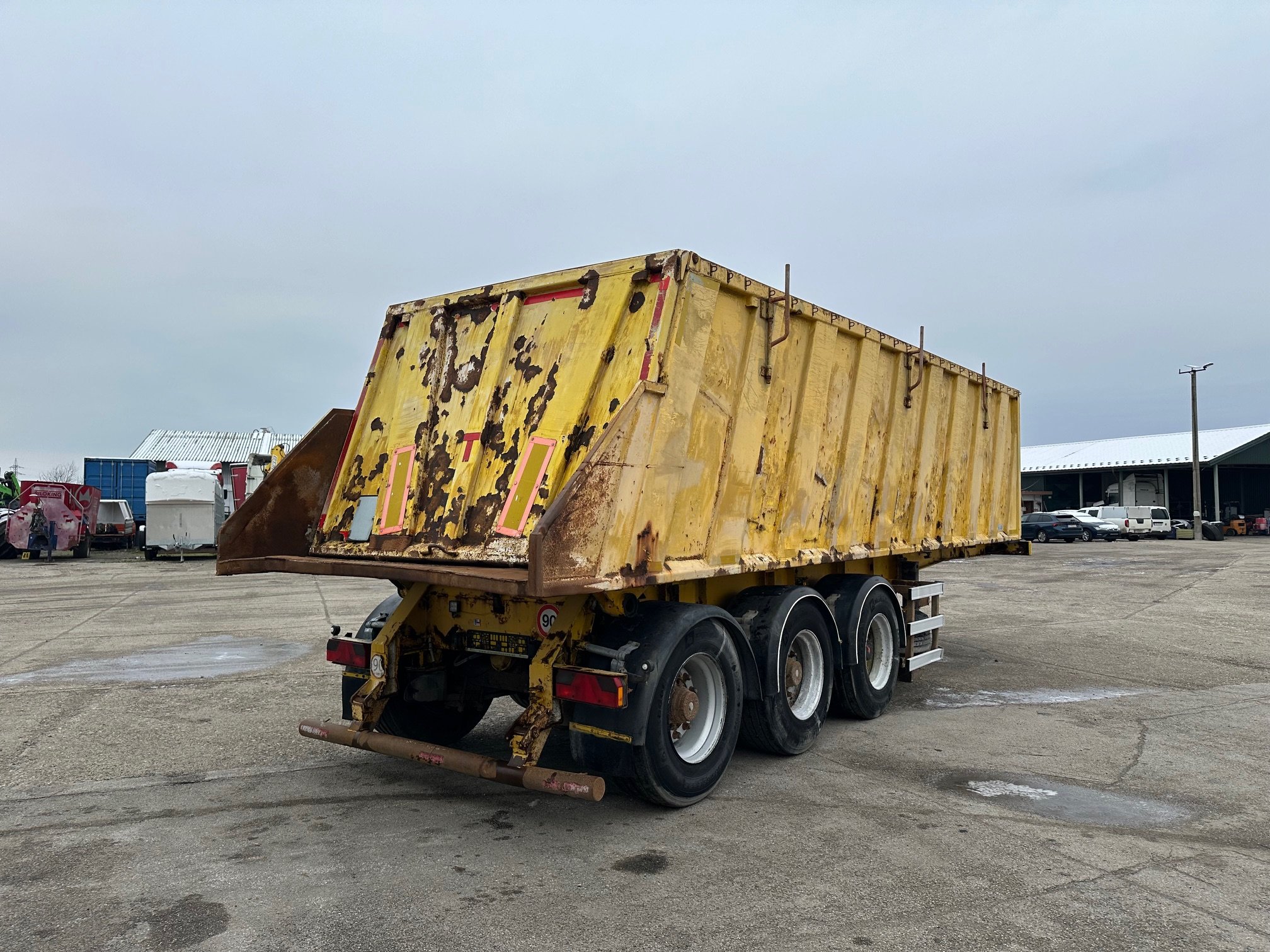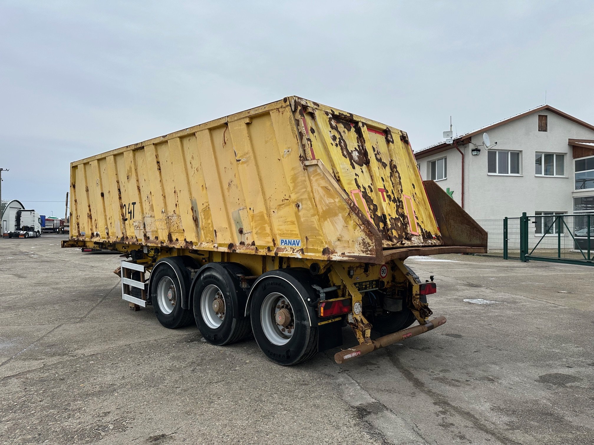 PANAV jednostranný vyklápač 27 m3 r.v. 11/2003, bubnové brzdy, 2x zdvíhacia náprava, Fe nadstavba, stav pneu.: 60%, rozmery ložnej plochy D:7,3 m, Š:2,34 m, V:1,6 m, váha: 8150 kg celková hmotnosť 36000 kg, CENA: 3900 EUR + DPH