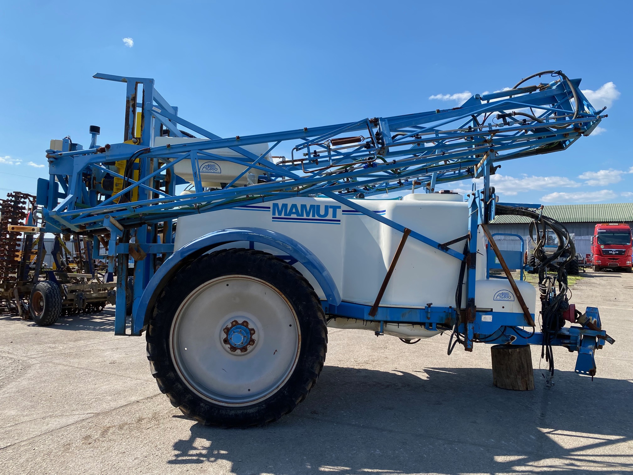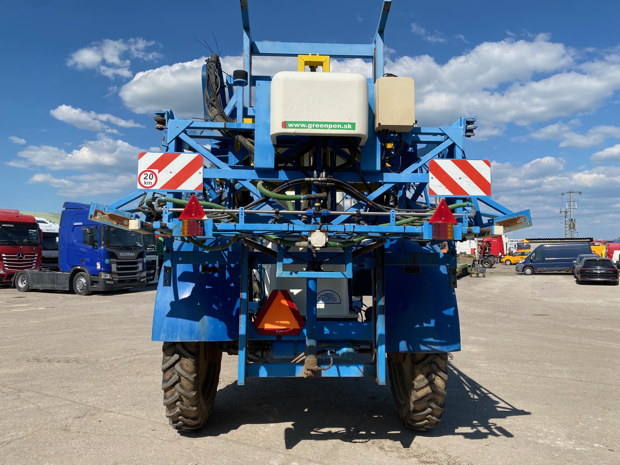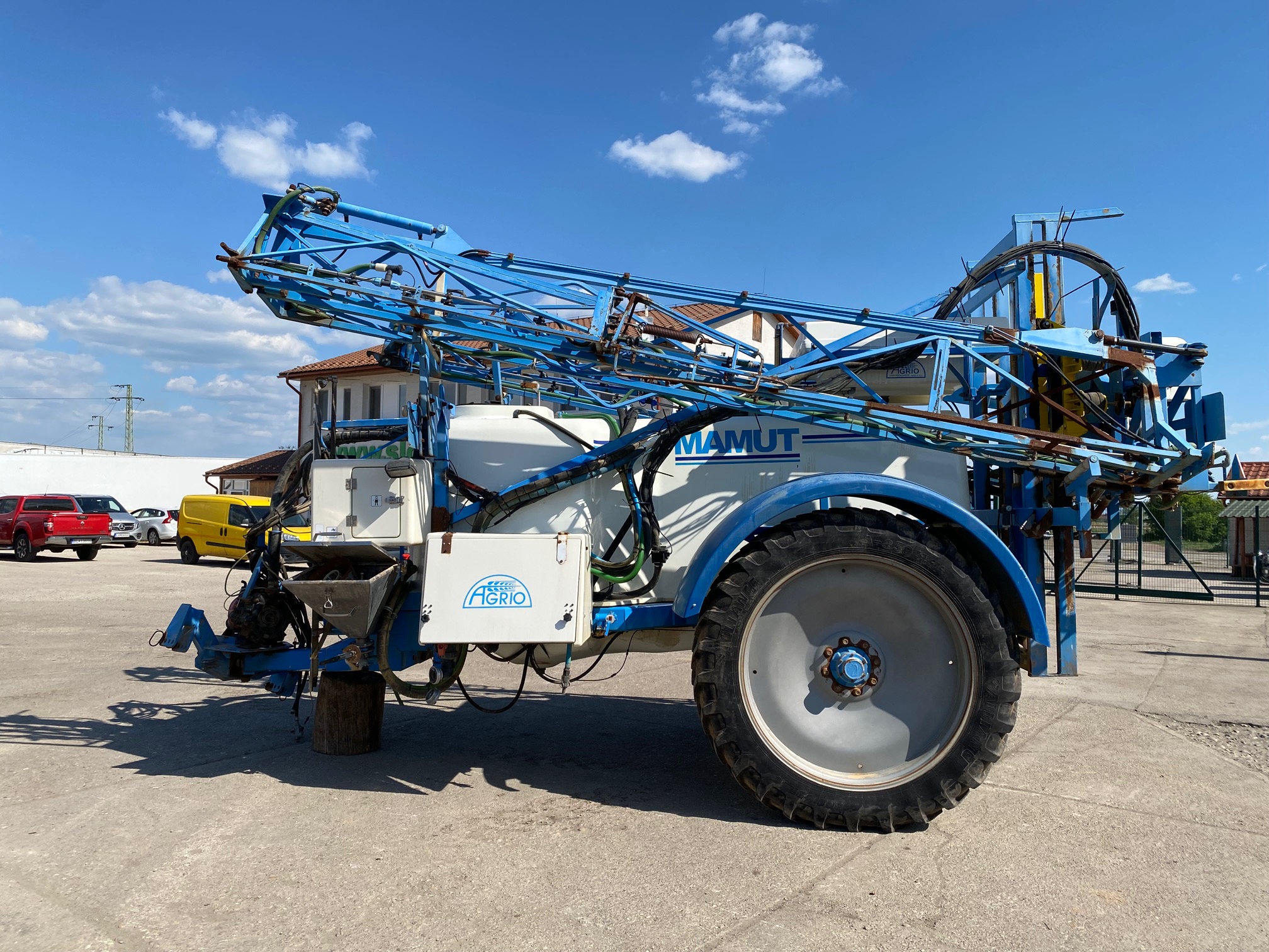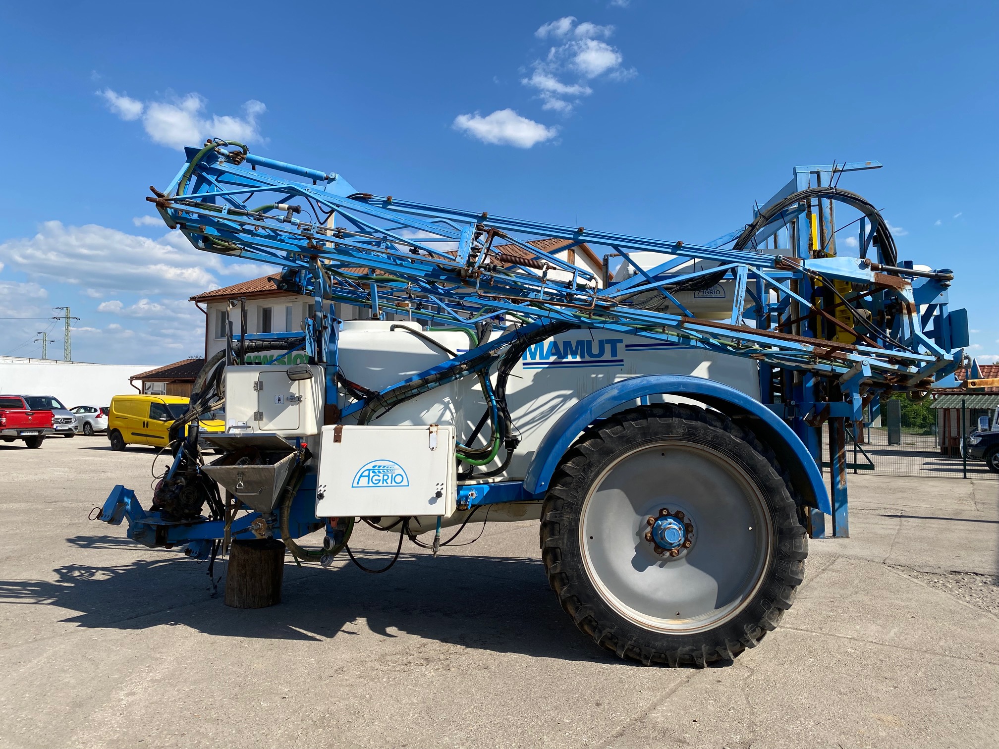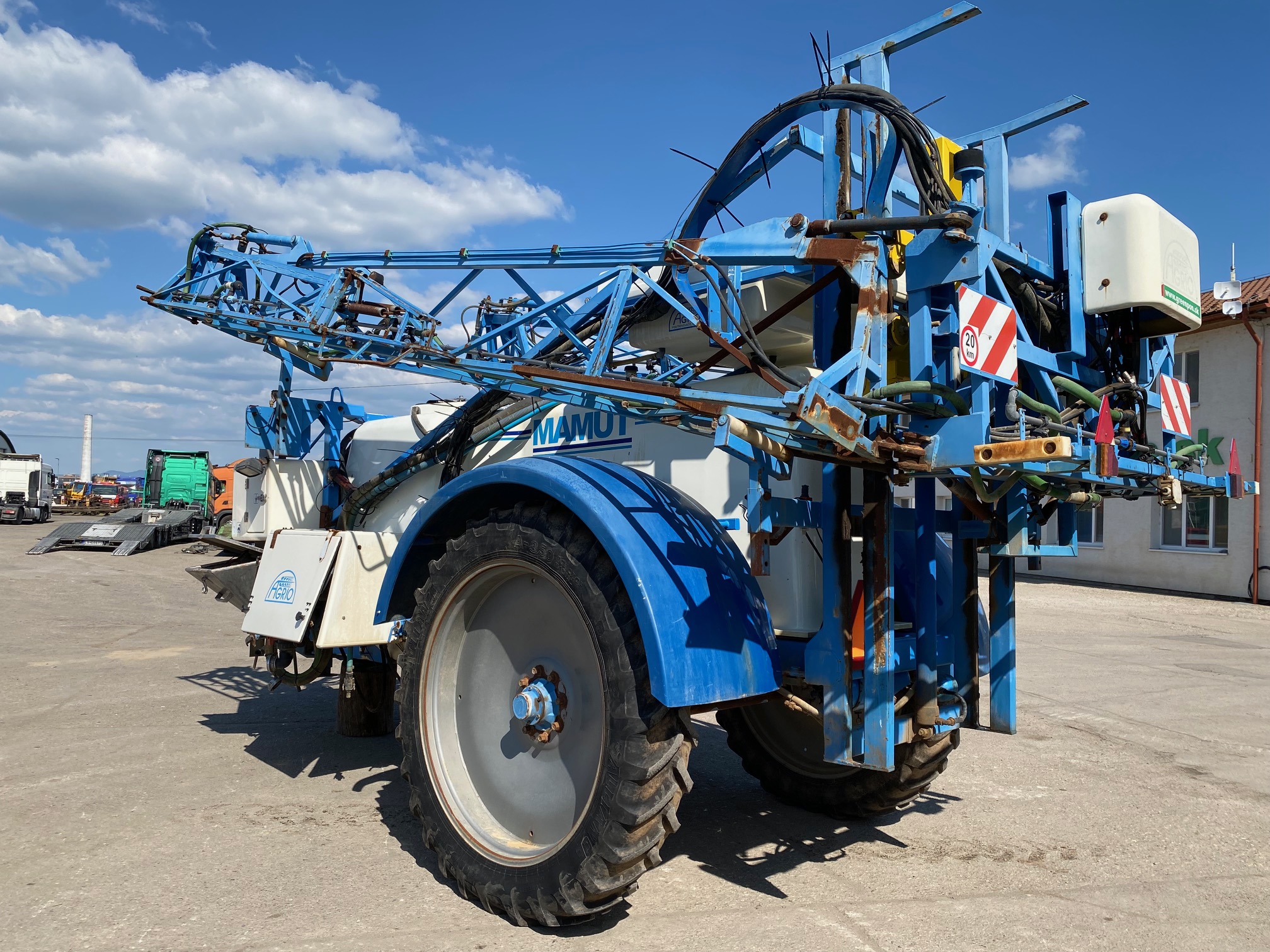 Postrekovač AGRIO MAMUT r.v. 2008, pracovná šírka: 18m, nádrž 4200 l, transportná hmotnosť 3950 kg, uchytenie do trojbodového závesu, s ovládacím terminálom do traktora, CENA=9.900 EUR+DPH