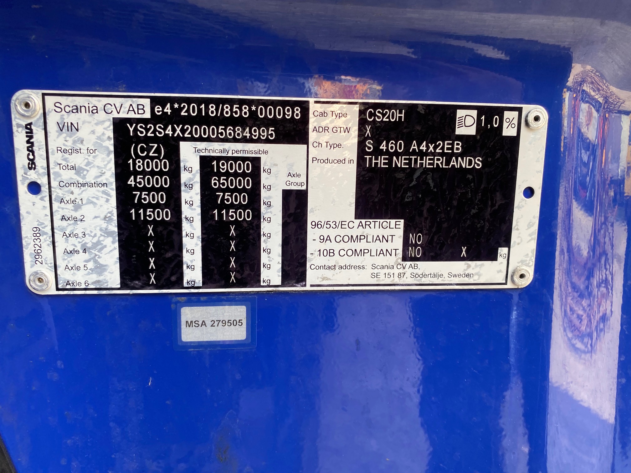 SCANIA S460 LOWDECK, retarder, automat E6 VIN 995