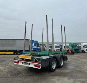 SVAN CHT202 klanicový príves na prepravu dreva, r.v. 10/2016, bubnové brzdy, ALU klanice, nápravy BPW, rozmery: D:5m, Š:2,3m, V klaníc:2,45 m, váha: 4040 kg, celková hmotnosť: 18 000 kg, stav pneu: 20%, vozidlo má zahraničný TP, CENA= 8900 EUR + DPH