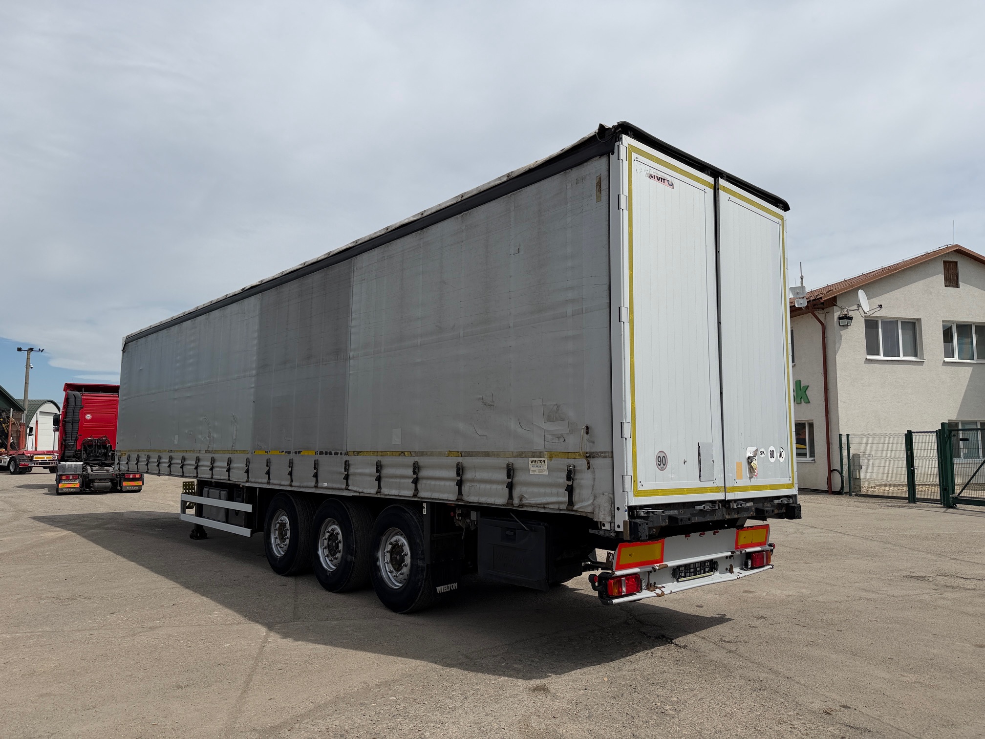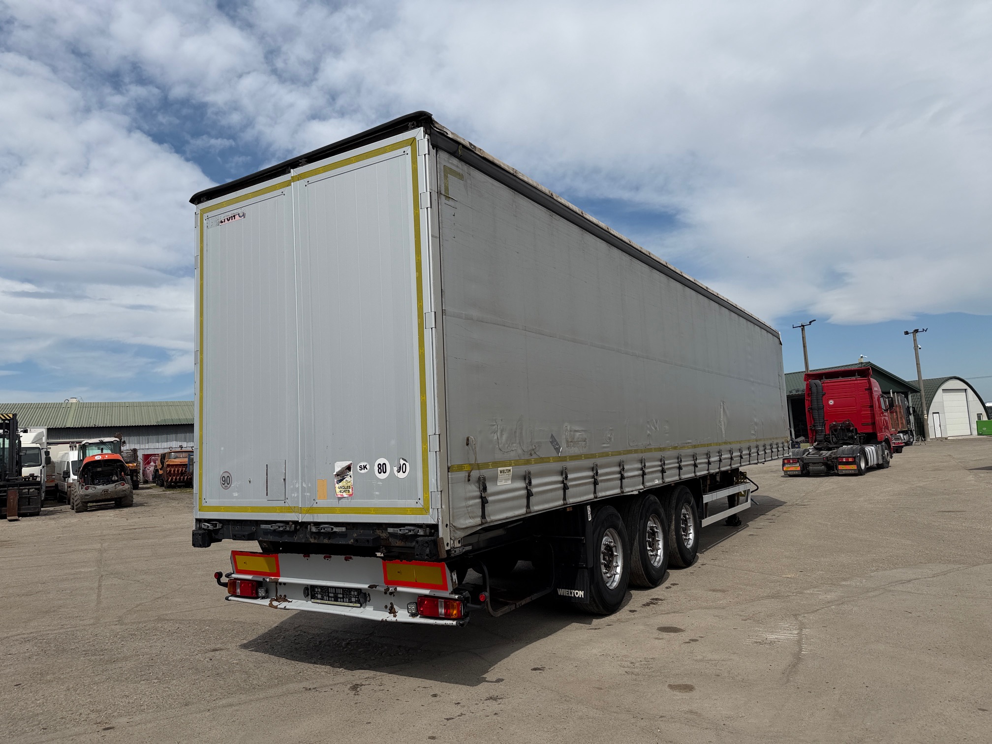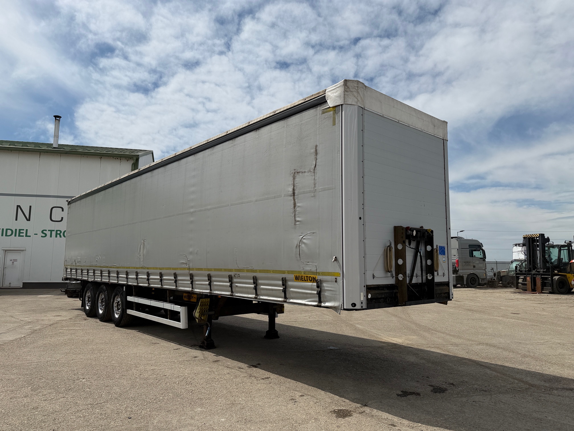 WIELTON NS STANDARD trojstrannka r.v. 03/2011, zdvíhacia náprava, kotúčové brzdy, vnútorná výška: 2,7m, váha: 6700 kg, celková hmotnosť: 36000 kg, stav pneu: 20%, STK 08/01/2027, CENA=2.800 EUR+DPH